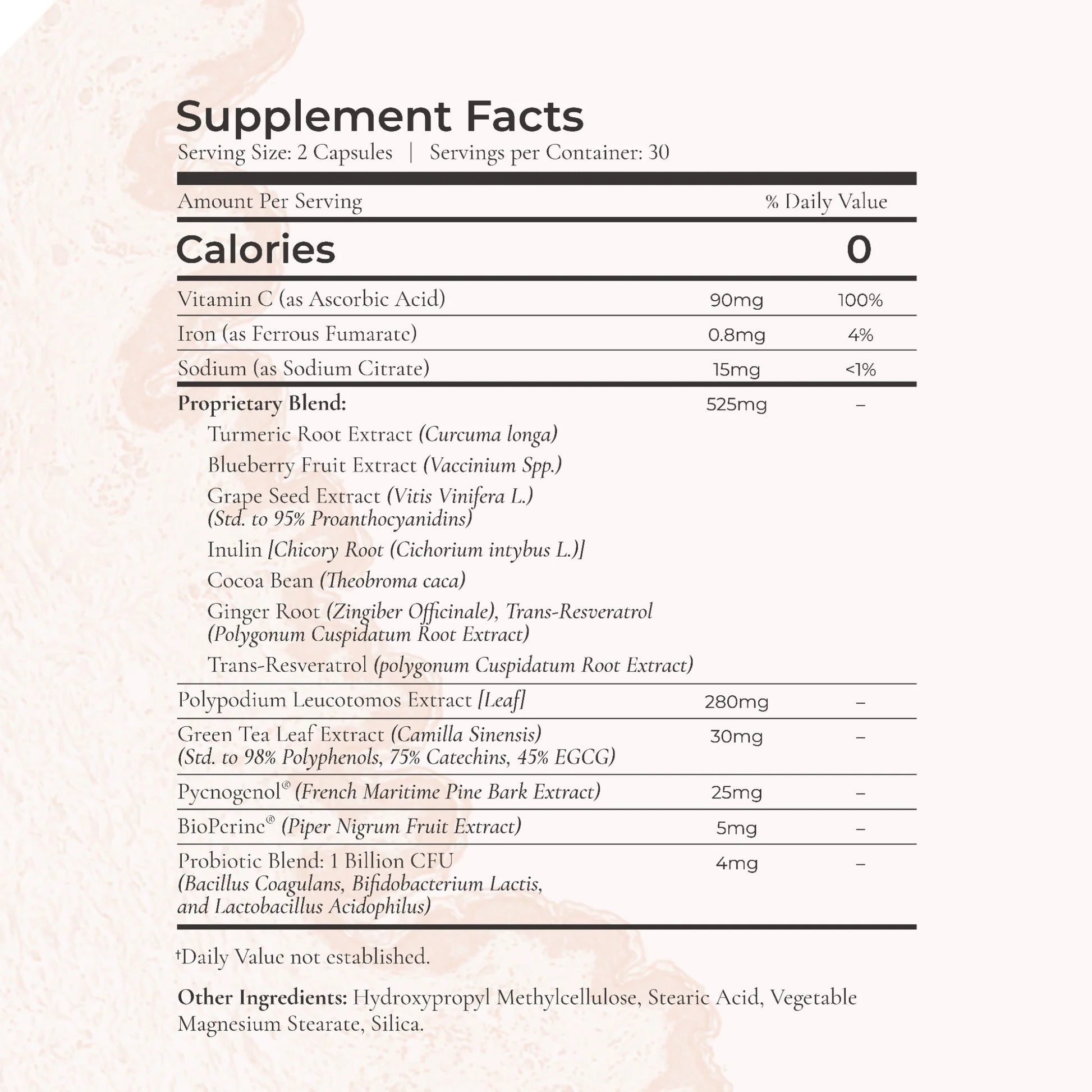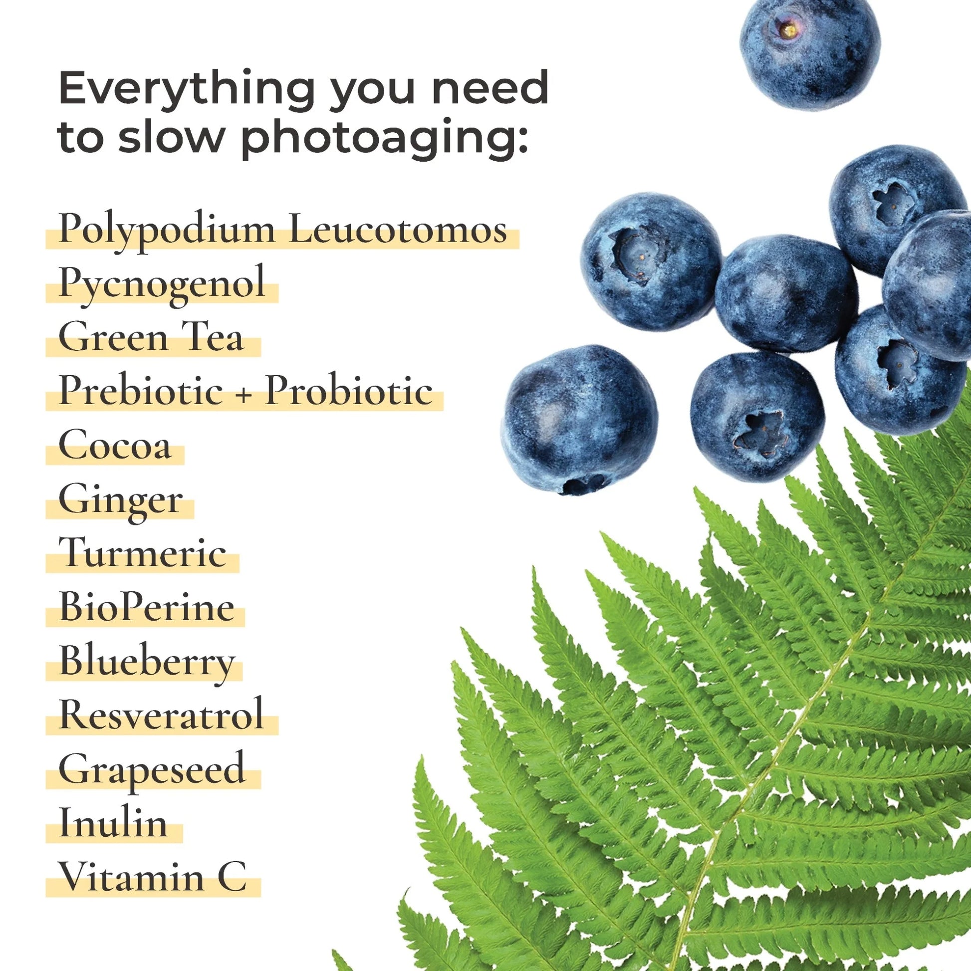 Our Age Defense Vitamins include polypodium leucotomos, an ingredient derived from a fern that protects your skin health from the effects of sun exposure and pycnogenol, a bark from the south of France that slows the signs of photoaging, as well as, tons of anti-oxidants. Our unique anti-aging formulation complimented with sun screen, can also help protect from the effects of sun exposure*.