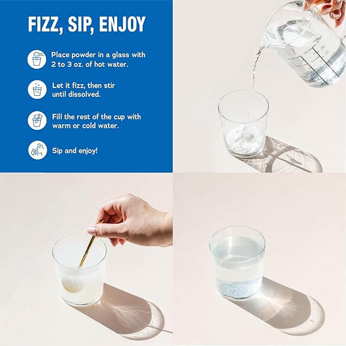 - DAILY SUPPLEMENT FOR ADULTS: Start with 1/2 teaspoon daily, gradually increasing to 2 teaspoons daily; just mix with water, fizz, sip, chill and feel the power of CALM