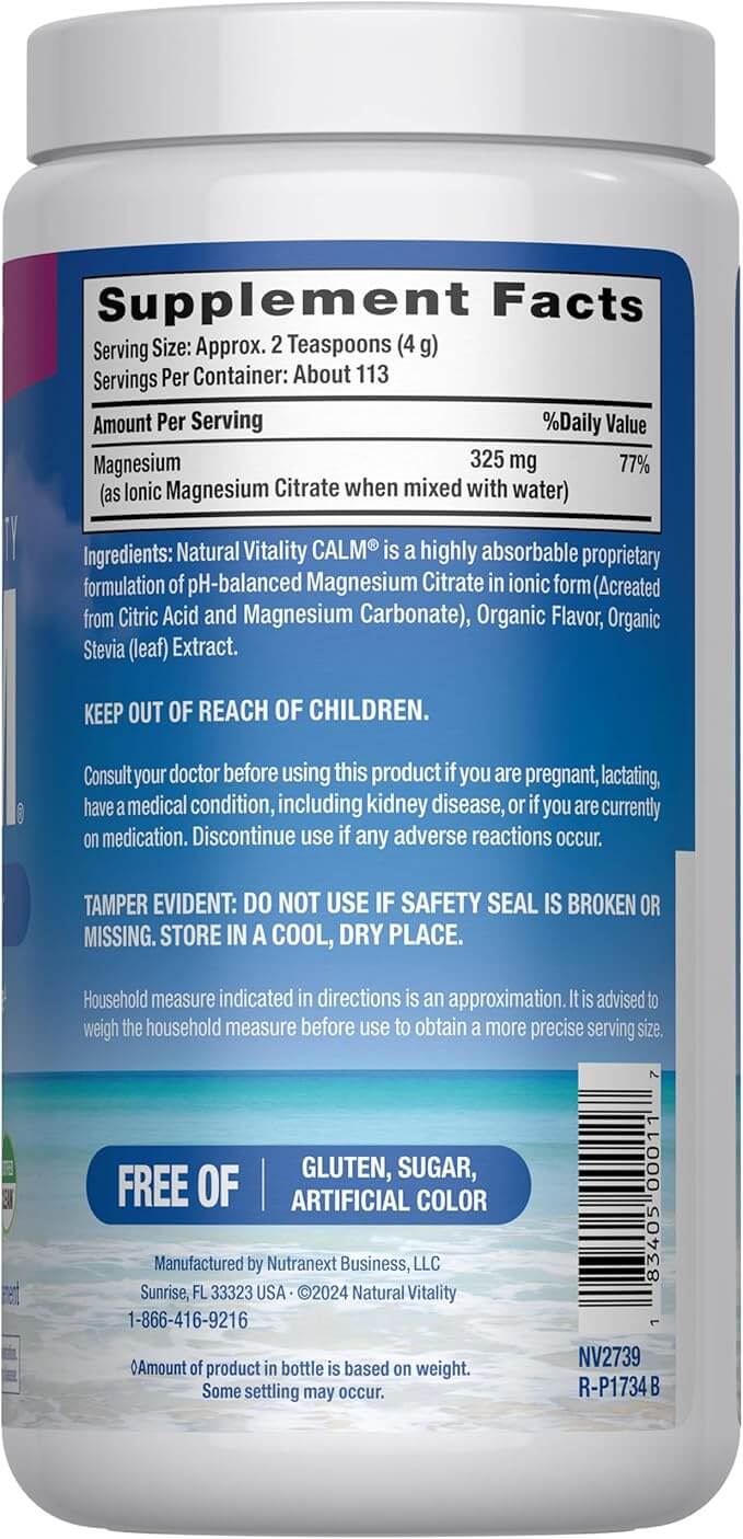 - DIETARY SUPPLEMENT: One 16 oz. bottle of Natural Vitality CALM Magnesium Supplement Drink Mix that helps support healthy magnesium levels and a healthy response to stress
